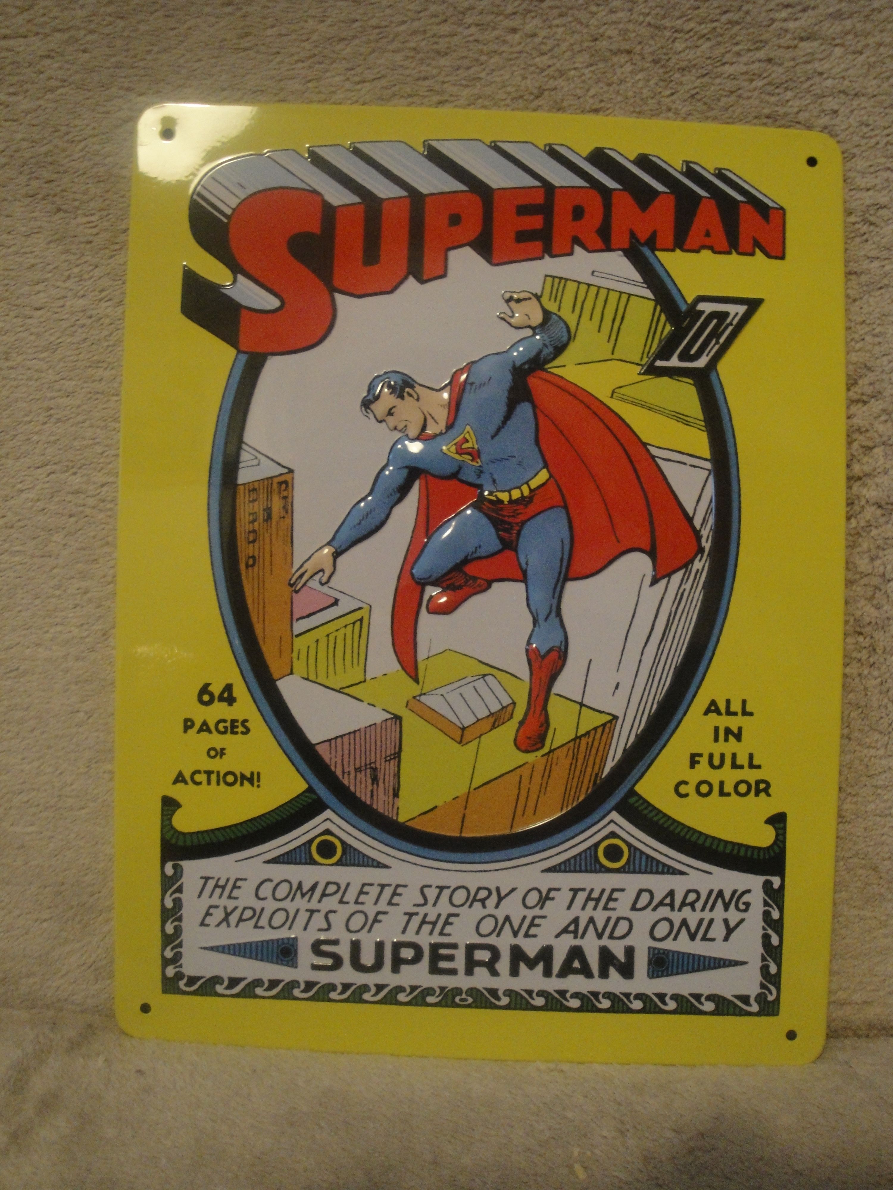 Auf die nächsten Abogeschenke musste ich drei Lieferungen warten. Warum das so lange dauerte, wurde mir nicht mitgeteilt. Aber das erste Blechschild traf dann endlich ein. Es handelt sich um ein Cover eines alten Comicheftes (Detective Comics #27 (Batmans erster Auftritt)). Das zweite Blechschild – ebenfalls eine alte Comicausgabe (Superman #1) – habe ich dann in der darauf folgenden Lieferung erhalten. Sieht gut aus und ist für Sammler sicherlich ein schickes Geschenk.